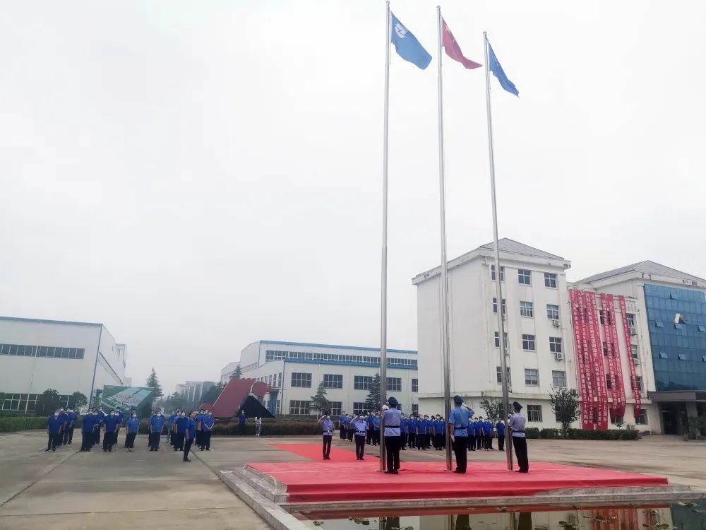 上午8:28分,在集團(tuán)總部廣場舉行了升旗儀式。冉冉升起的國旗、中軸旗,迎風(fēng)飄揚(yáng),格外鮮明、亮眼