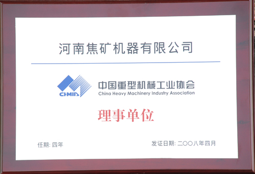 2009年4月18日至19日,中國重型機械工業(yè)協(xié)會五屆二次會員代表會議暨理事會議在北京召開。 根據(jù)協(xié)會章程,并經(jīng)五屆三次常務(wù)理事會議通過,增補河南焦礦機器有限公司為中國重型機械工業(yè)協(xié)會第五屆理事會理事單位,增補公司董事長侯向保為第五屆理事會理事。 經(jīng)中國重型機械工業(yè)協(xié)會秘書處推薦,并經(jīng)五屆三次常務(wù)理事會審定,公司董事長侯向保被授予“中國重型機械工業(yè)協(xié)會先進工作者”稱號。