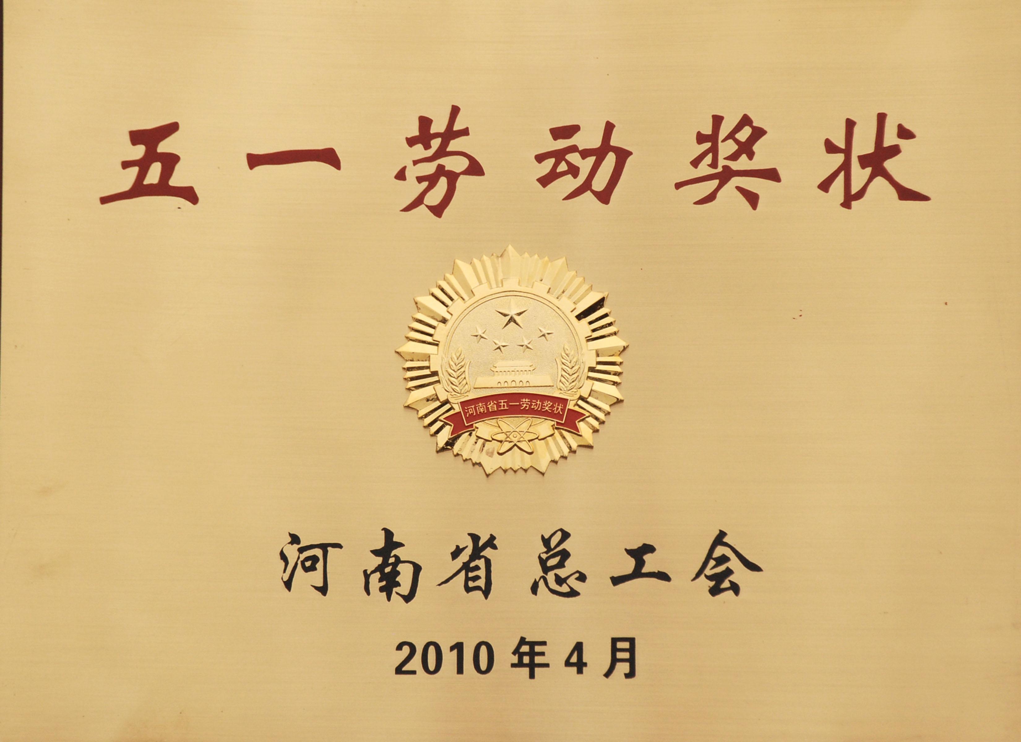 公司獲河南省“五一”勞動獎狀