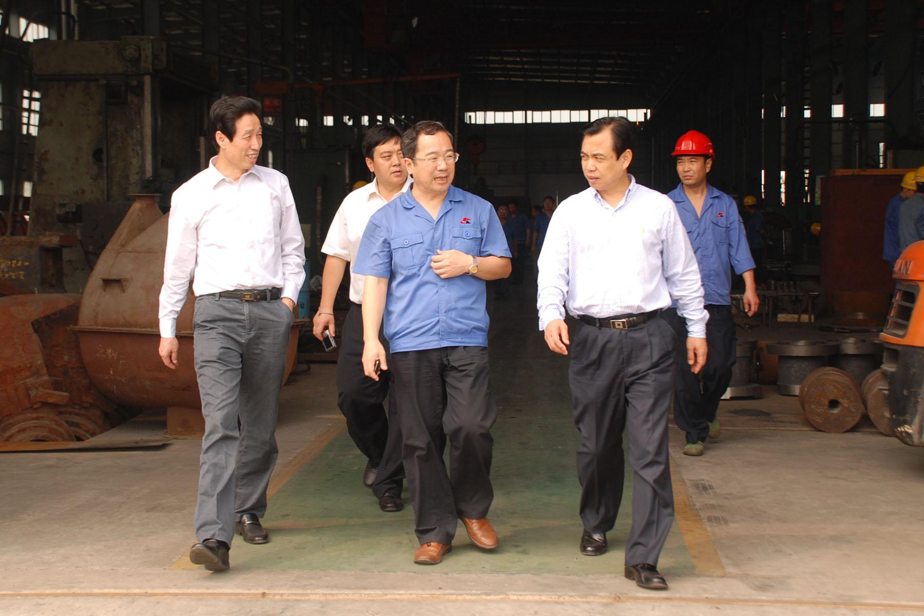 任沁新一行先后到重機(jī)廠、金結(jié)廠以及在新廠區(qū)生產(chǎn)作業(yè)的中凱礦機(jī)公司、華凱鑄鍛鑄鐵廠現(xiàn)場(chǎng)實(shí)地考察。來(lái)到一個(gè)同行業(yè)的生產(chǎn)現(xiàn)場(chǎng),他倍感親切,不時(shí)地在不同生產(chǎn)設(shè)備及半成品、產(chǎn)成品前和公司董事長(zhǎng)侯向保親切交談。