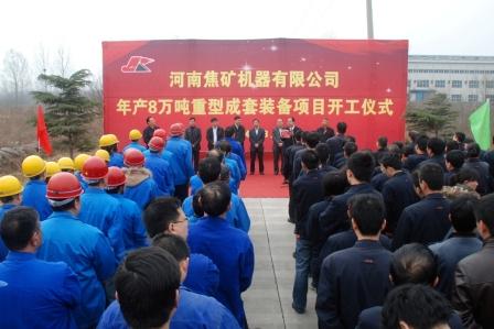 焦礦公司年產8萬噸重型成套裝備項目是焦作市政府批準支持的老城區(qū)工業(yè)企業(yè)搬遷改造項目,位于焦作市新區(qū)豐收東路,項目占地352畝,總投資52198萬元,生產綱領為年產重型成套裝備8萬噸,達產后年可實現銷售收入10億元,實現利稅1億元。項目從2014年3月份開工建設,計劃于2015年年底前全部建成投產。項目主要建設內容包括:新建65000平方米的重機和鉚焊廠房, 新購置10米立車、落地鏜銑床、滾齒機等大型機械加工設備,建設7682平方米的技術研發(fā)大樓,組建成套重型機械裝備設計研究院。項目建成達產后,焦礦公司將成為在全國同行業(yè)中設計研究開發(fā)能力及加工制造能力名列前茅的成套重型機械裝備制造企業(yè)。